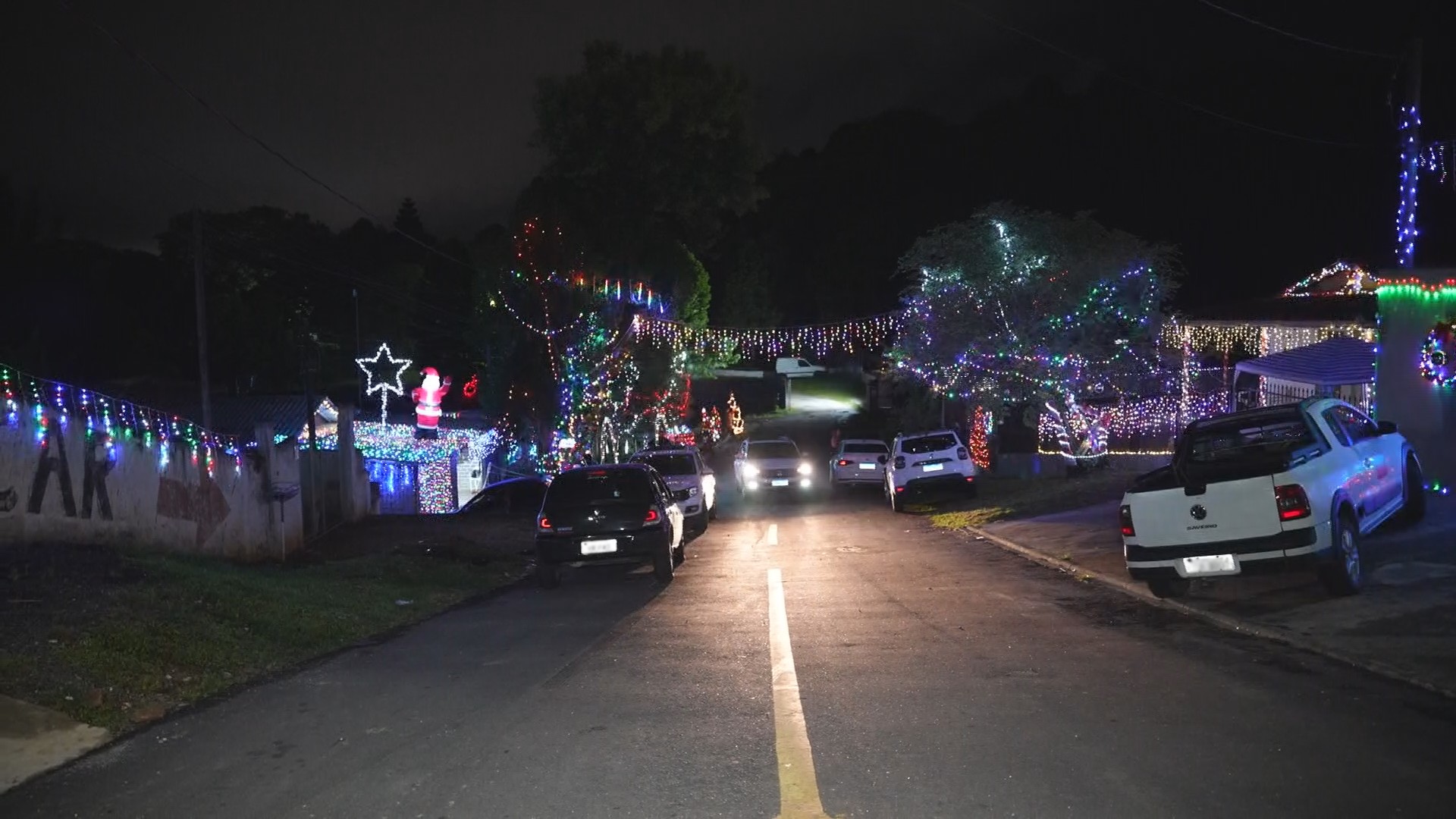 Boneco de neve e até cachorro com pisca-pisca: rua no Paraná é tomada de enfeites em ‘guerra natalina’ entre vizinhos
