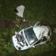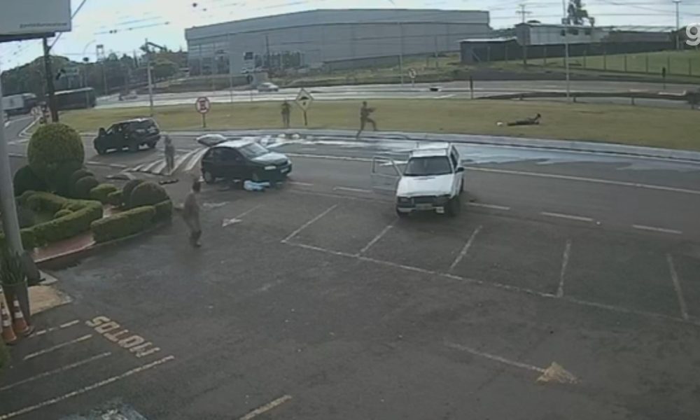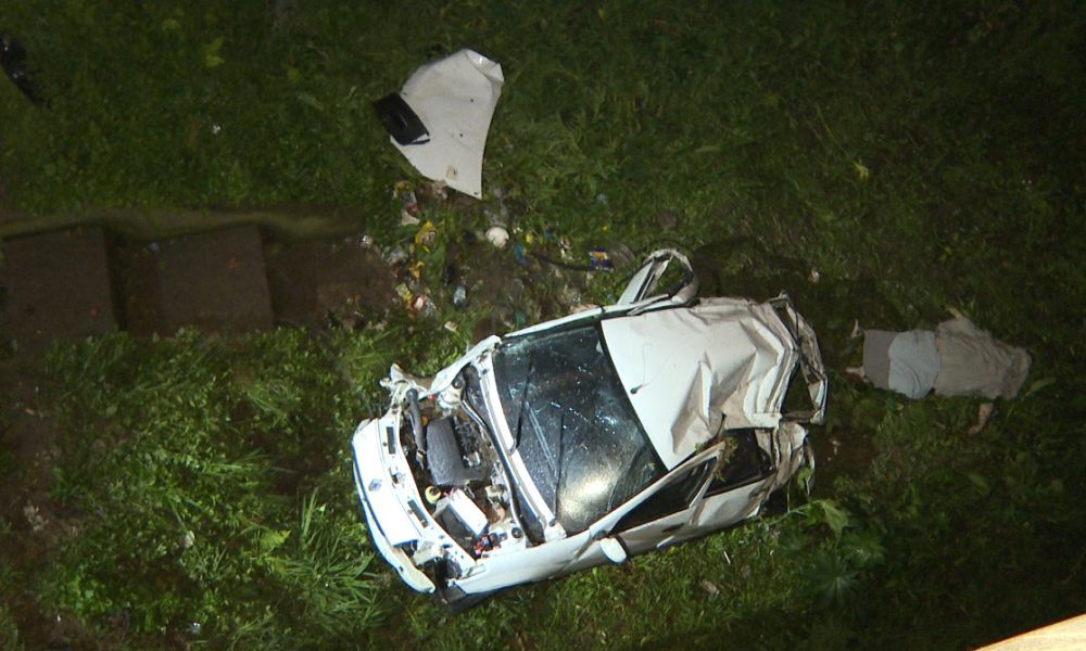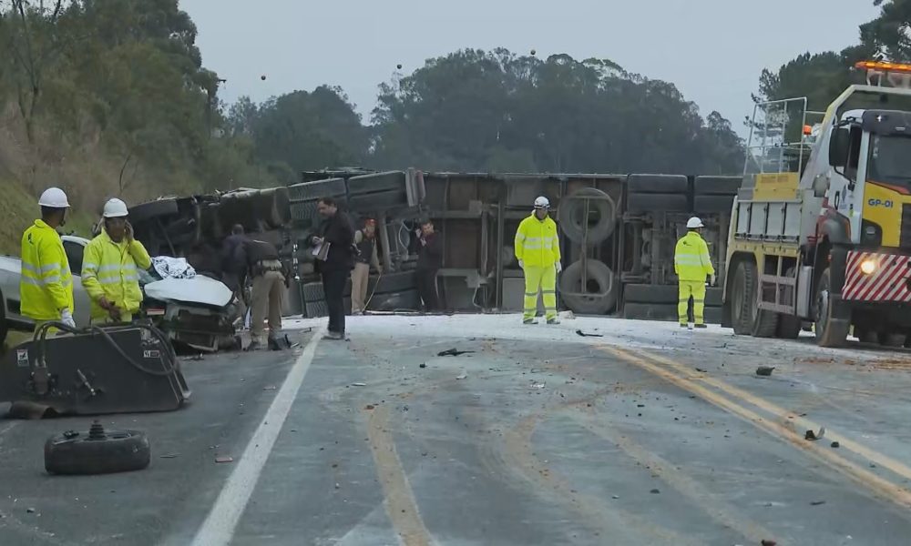 1 de 2 Carro tenta ultrapassagem, é atingido por outro veículo, cai de ponte e mata mulher na BR-277, na Grande Curitiba — Foto: Tony Mattoso/RPC Carro...