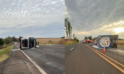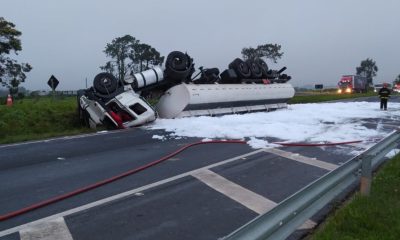 Caminhão-tanque tomba, motorista fica ferido, carga vaza e PR-151 é bloqueada Campos Gerais e Sul Motorista fica preso às ferragens e PR-151 é bloqueada após caminhão-tanque...
