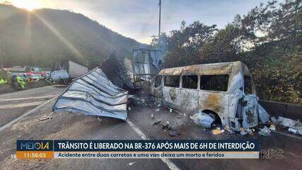 Além da van, a batida envolveu um caminhão-baú e uma carreta no trecho que liga o Paraná a Santa Catarina, entre Tijucas do Sul e Guaratuba (PR). Com o impacto, dois veículos pegaram fogo. O motorista do caminhão morreu no local.