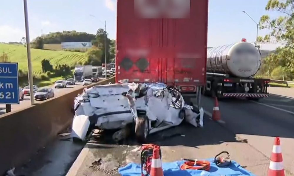 Três pessoas morrem após carro ser esmagado por caminhões, no Paraná Paraná Três pessoas morrem após carro ser esmagado por caminhões na BR-376, no Paraná Acidente...