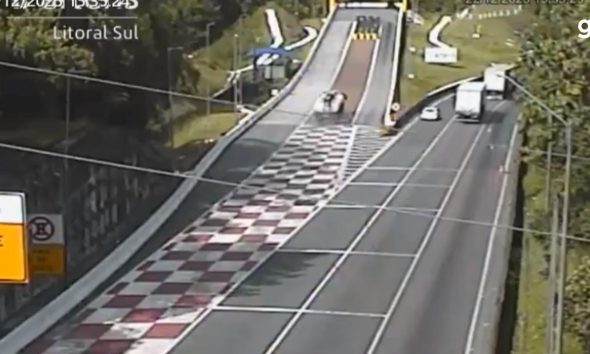 1 de 2 Motorista tentou realizar uma ultrapassagem e bateu em dois veículos. — Foto: PRE Motorista tentou realizar uma ultrapassagem e bateu em dois veículos. —...