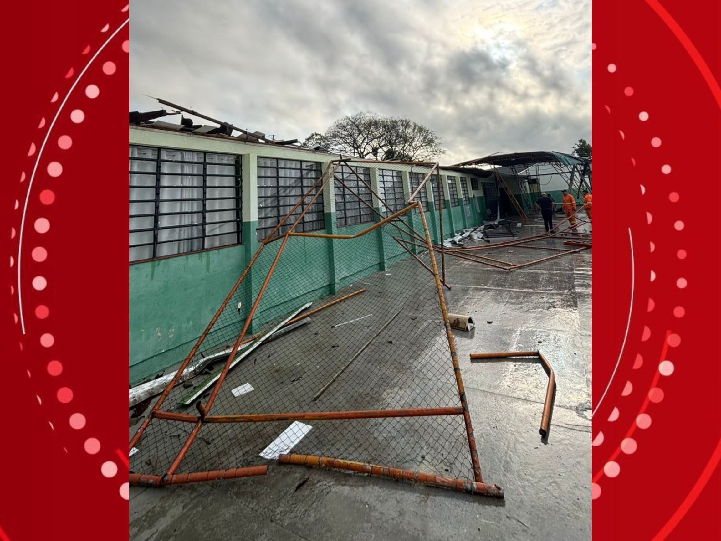 Queda de cobertura de escola, destelhamentos e árvores caídas: temporal causa estragos no Paraná